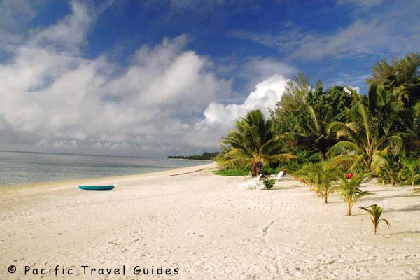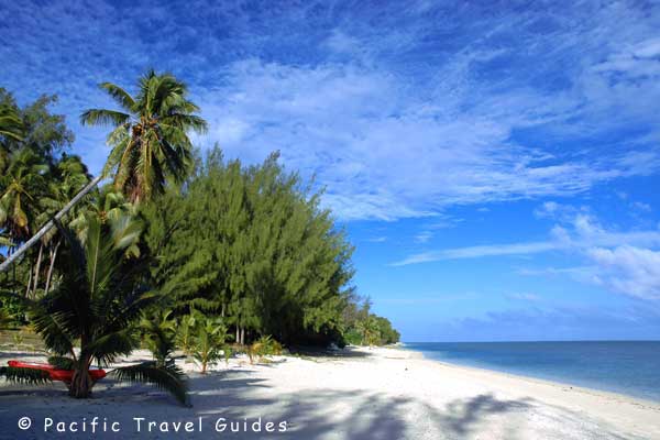 The beach infront of Aretai Bungalows is of fine white sand with broken coral pieces. The lagoon is part coral, part sandy with areas good for swimming and others good for snorkelling.