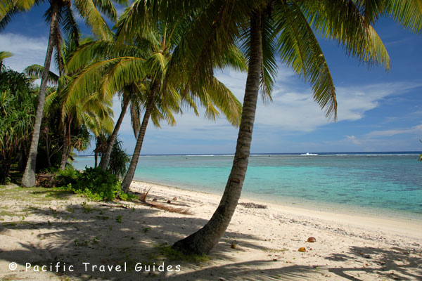 Lagoon Breeze Villas has a swimming pool located amongst landscaped gardens. Access to the beach is across the coastal road (there's not much traffic on Rarotonga). The beach is white sand mixed with coral particles and backed by low shrubs and ironwood trees. The beach meanders along the coast for several kilometres making it good for exploring. Like much of West Rarotonga, the lagoon is only average for swimming (there's a shallow sandy bottom area close to shore for dipping in) and snorkelling is reasonable further out towards the reef's edge but is often too shallow at low tide with exposed coral patches.see our other Cook Islands Pictures