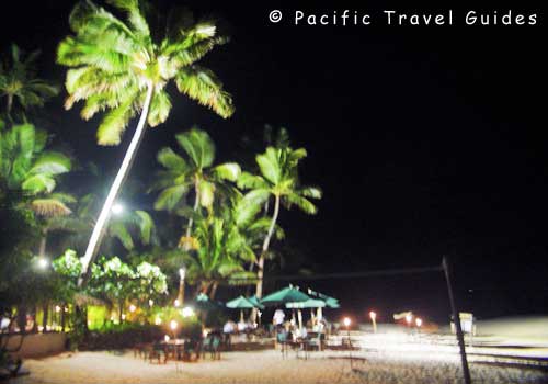 The beachfront Lagoon Terrace and ‘Barefoot Bar’ offer cocktails and happy hour, and the ‘Sandals Restaurant’ is open all day for lunch and dinner. The menu is good and varied with light dishes under NZ$ 20 and grill dishes for an average of NZ$ 25. Island Nights are put on twice weekly with dinner and entertainment in the price