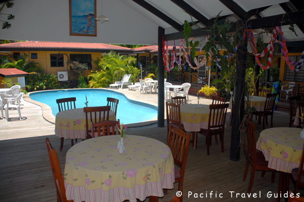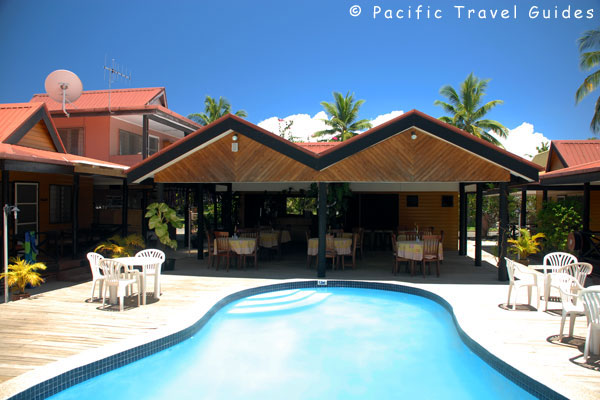 Beach Escape Villas Fiji is a collection of twelve wooden bungalows surrounding a swimming pool less than a minute walk from Wailoaloa Beach in Nadi. The property is located in the popular backpacker beach area of Newtown and has a restaurant and pool table.