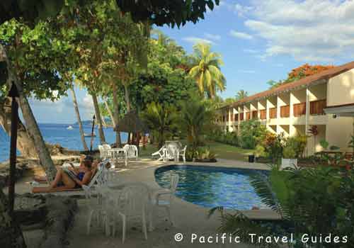 Garden Island Resort offers 28 air-conditioned rooms. There's no beach and the lagoon offshore is shallow and rocky, but the views from the poolside overlooking the Somosomo Straights towards Vanua Levu are stunning, especially at sunset. Enjoy the afternoon on the white sandy beach of tiny Korolevu Island, ten minutes boat ride from the resort.