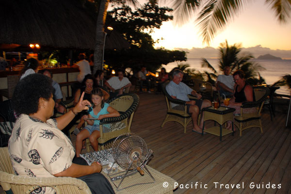 Mana Island has three restaurants / snack bar to choose from. The large wooden deck overlooking the north beach with its spacious indoor dining hosts buffet breakfast and buffet meals (Mongolian BBQ, Fijian Feast and Seafood Buffet are common events). The South Beach Restaurant is quieter for a-la-carte dining. There's a lively sunset bar with evening bingo sessions as well as a boutique shop and games room with table tennis and pool table.