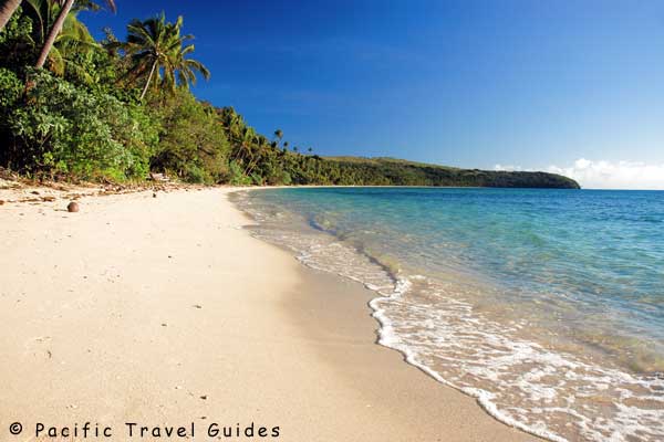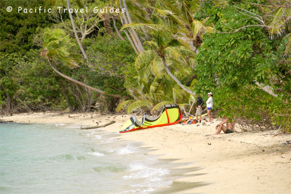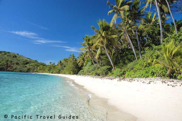• The Beach:   White sand beach backed by coconut palms
