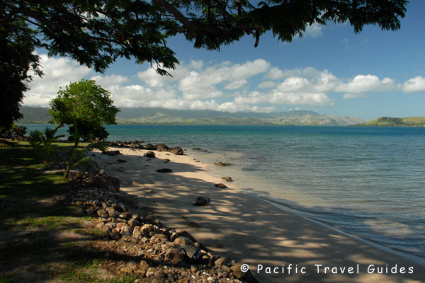 Volivoli Beach Resort is set on the very northern point of Viti Levu about ten minutes drive from Rakiraki Town. There's no beachfront infront of the resort, but one minute walk along the mangrove walkway leads to Volivoli Point, a picturesque sand spit with small beach at low tide. There's a volleyball court, kayaks for hire, good snorkelling off the point and exceptional scuba diving in the Vatu-i-Ra Passage, 40-minutes by dive boat.