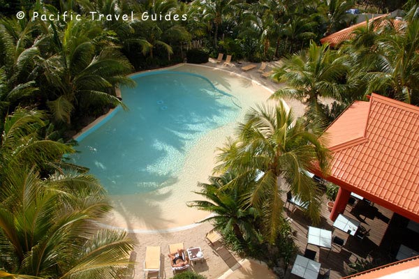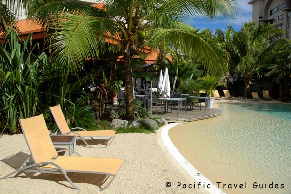 There’s a small swimming pool surrounded by lovely tropical gardens and a sandy area beside the pool with sun loungers re-creating a beach holiday atmosphere. If being right beside the beach isn’t paramount, the Ramada Plaza makes an extremely comfortable and good value base whilst staying in Noumea.