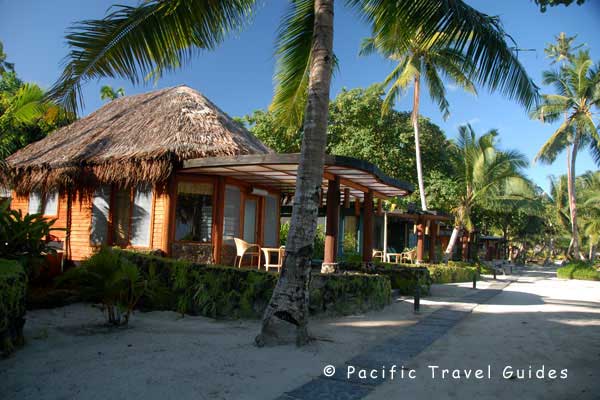 All rooms and bungalows are finished in fine, local materials and feature both air conditioning and ceiling fans, tea and coffee making facilities, electronic in-room safe and mini-refrigerator. Included complimentary with all Fales is a mini-bar (beer, wine, soda, bottled water - restocked daily), and snorkelling equipment.