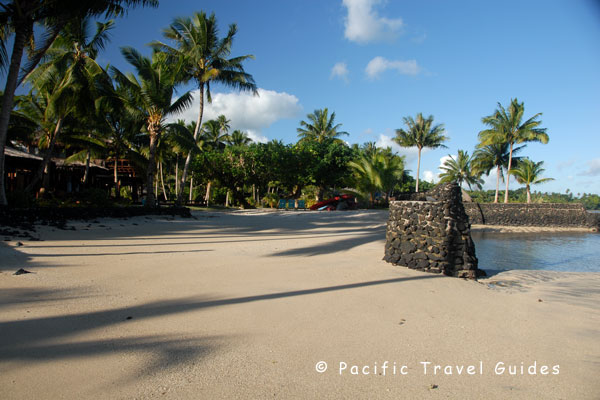 - Hotel Location: Beachfront on access road off highway, South Coast Upolu Island