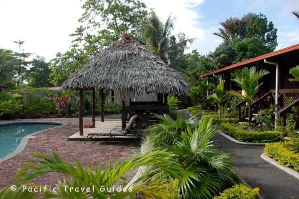 Eden's Edge Hotel Samoa is a modern hotel less than 10 minutes walk to downtown Apia and the harbour wall yet in a quiet tropical surrounding. The hotel has a swimming pool, restaurant and bar and clean modern rooms - budget style rooms have shared bathrooms and ceiling fans; standard and superior rooms have en-suite hot water bathrooms, air-con and balconies.