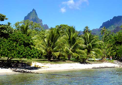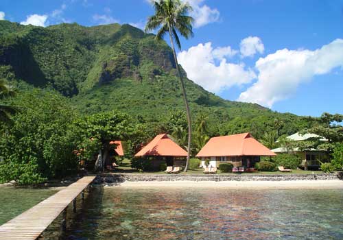 Beautiful location on the coast between the Bays of Cook and Opunohu on Moorea's north coast. Spacious garden setting and lovely mountain views. Sandy beach is narrow and disappears at high tide but overall this is a charming pension with very friendly hosts.