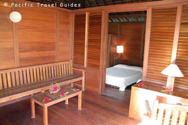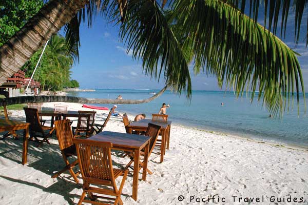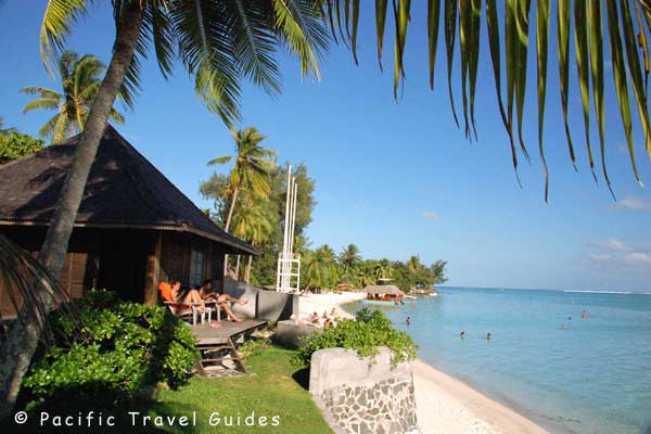 The daytime reception sits in front of the property alongside the main road and separated by a rather unattractive cement wall. However, once inside, the resort has a spacious feel with pleasant tropical gardens. There is no restaurant on site although the owners have a restaurant further along Matira Beach (about 5 minutes walk) which serves breakfast, lunch and dinner. There are several other independent restaurants within walking distance.