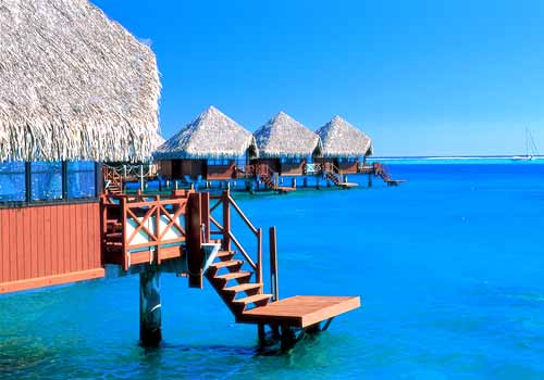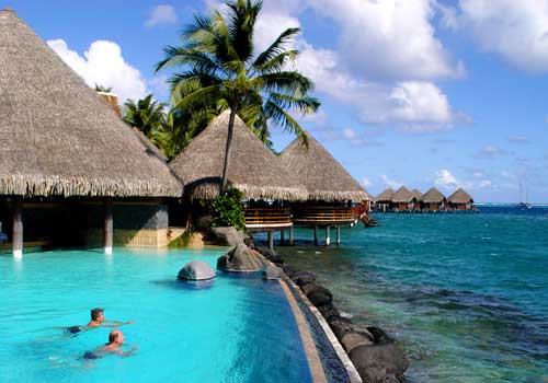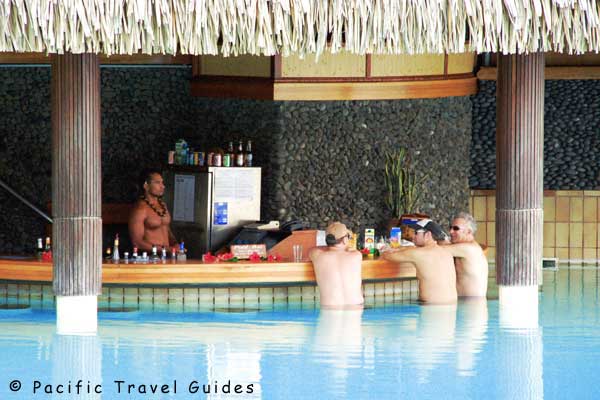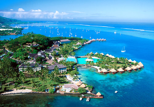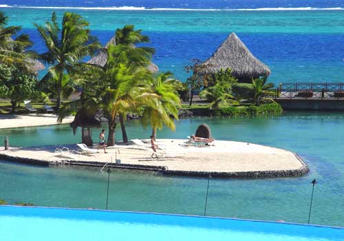 Intercontinental Tahiti French Polynesia is a delightful oceanfront resort on the west coast of Tahiti with the nicest overwater bungalows on the main island and several pleasant artificial beach settings and lagoonarium. The large reception area offers a balcony with sweeping views over the ocean and towards Moorea. There's one huge swimming pool in front of the hotel and another smaller pool fronting the ocean. The hotel boasts one of the best Polynesian dance performances in French Polynesia.