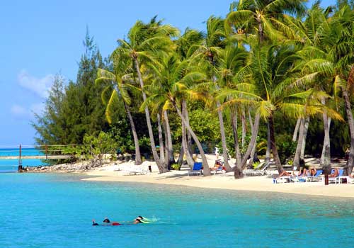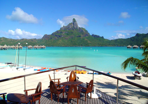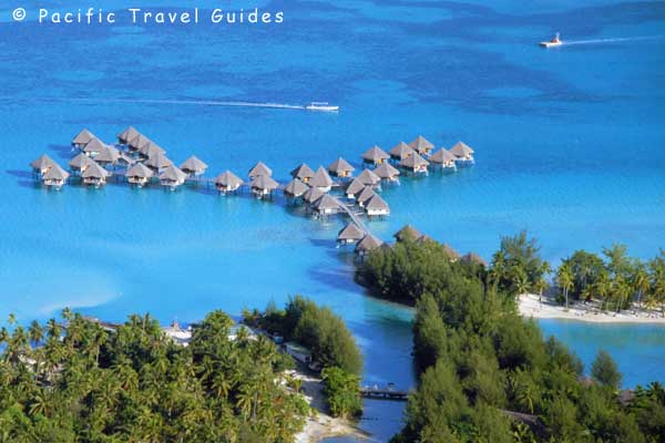 Le Meridien Tahiti is built on a tiny flat motu on the eastern side of Bora Bora Lagoon and has been well landscaped providing a natural inner lagoon filled with tropical fish which also acts as a turtle sanctuary.