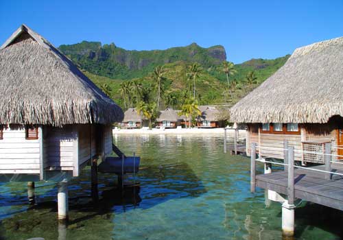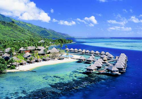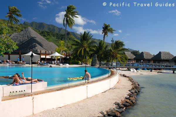 Pearl Resort Moorea French Polynesia is located in a delightful setting on a small beach on the north coast of Moorea, backed by mountains and offering exceptionally presented bungalows and rooms. The Polynesian style reception leads down to an infinity swimming pool backing right onto the ocean. Water sports are plenty, there's a small Spa and Polynesian floor shows and overall makes a luxury base for enjoying Moorea.