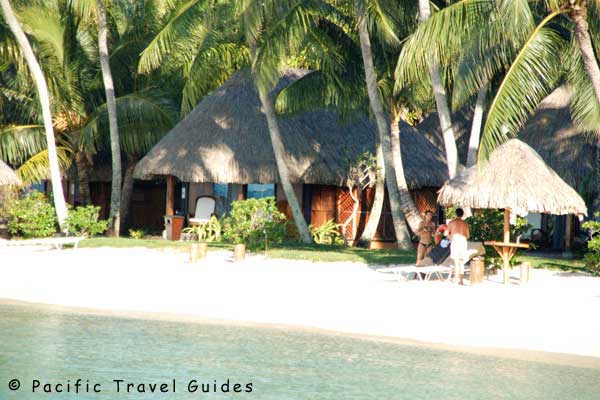 On a private island in the lagoon are the "island bungalows" located on a private island within the lagoon and accessible by a three minute boat ride from the resort beachfront. The small motu island has an impressive central restaurant serving exquisite food with each table overlooking the lagoon and the mountains of Bora. There's a picturesque but small sandy point for beach lovers and the island has steep hills with walking tracks are built high up on stilts in a wooded hillside offering great views overlooking the ocean or on the lagoon (note cobbled stone pathways and steep hills may be impractical for some guests).