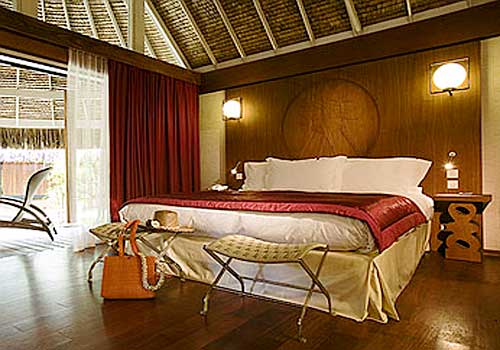 There are two types of bungalows on this island: The island lodges are built high up on stilts in a wooded hillside offering great views overlooking the ocean or on the lagoon (note cobbled stone pathways and steep hills may be impractical for some guests): whilst twenty overwater bungalows have unobstructed ocean views looking back to the magnificent mountain landscape of Bora Bora.