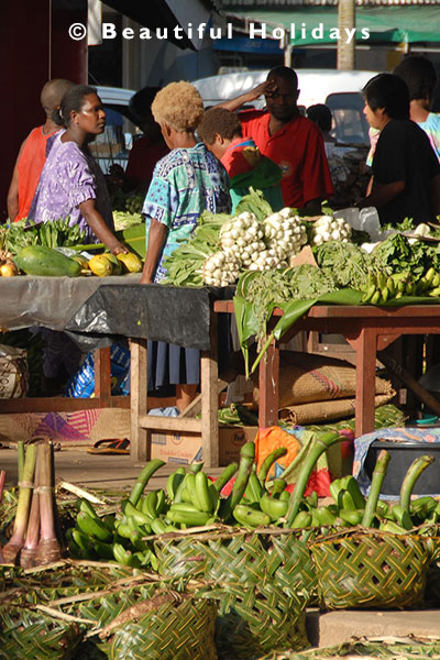 Although without a beach, Port Vila is an attractive seaside town built in the heart of a large bay backed by mountains which makes it ideal for visiting overseas cruise ships. The downtown area has some lively waterfront restaurants and bars, although its shops are shabby and uninspiring - the best place to browse is the flea market adjacent to the huge 24-hr fresh produce market which is one of the attractive in the South Pacific.