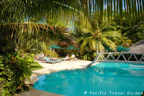 Beach Front Fares are traditionally designed bungalows with thatch roofs offer good privacy and are set twenty metres back from the beachfront amongst tropical gardens and ancient trees. All bungalows are open plan and airy with wooden slated louvre windows, high ceilings, ceramic tile floors, air-conditioning, ceiling fan. Bungalows have a queen size bed and single bed, 24-hr electricity mini-bar and drinkable rainwater.